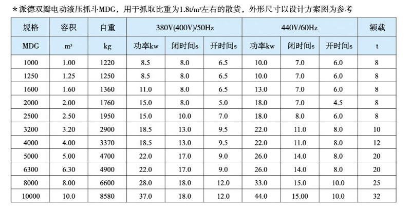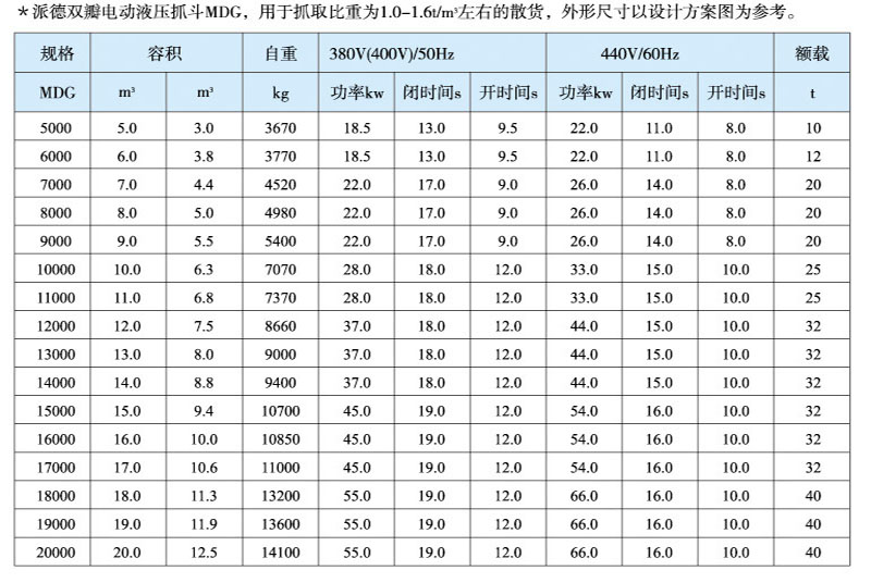 Electro hydraulic grab is a kind of grab with its own hydraulic system such as motor and hydraulic pump, which is driven by external power supply to realize opening and closing. The grab depends on the forward and reverse rotation of the motor or the hydraulic directional valve to control the opening and closing of the grab. Electro hydraulic bulk cargo grab is an effective tool for handling bulk cargo such as yellow sand, coal, mineral powder, ore and cement in various harsh environments. The grab is equipped with a hydraulic system, and the main components of the hydraulic system, such as valve group, seals, valve blocks, etc., are European and American brands. The hydraulic pump adopts constant power pump and hydraulic servo system. The system pressure change can effectively control the output of the pump. When the maximum pressure is reached, the flow of the pump is very low, which greatly reduces the overflow, reduces energy consumption, and reduces the oil temperature, so as to use long-time continuous work and greatly improve the production efficiency. The grab has simple structure and convenient operation, and can work in various harsh environments. The unique jaw curve is particularly conducive to the loading and unloading of various bulk cargoes. The upper part of the grab is equipped with a cable interface to facilitate the connection with the crane.